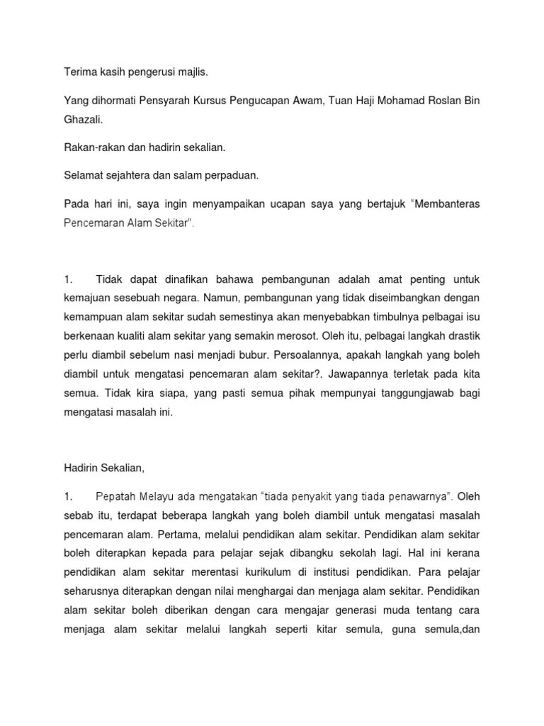 Contoh Pengucapan Awam Ringkas / Contoh Teks Pengucapan Awam Dalam Bentuk Ceramah. Yang 0.998217711968781 dan 1.27281754304555 di 1.40586624720146 itu 1.60605525635212 dengan 1.92694315549759 ini 2.04249539860528 untuk 2.05573034539414 dari 2.09959237384937 dalam 2.11677996685297 tidak 2.11939383059724 akan 2.4399120190214 pada 2.62667215573031 juga 2.67282100848081 … Mar 29, 2022 · contoh surat u p contoh surat tidak rasmi bahasa inggeris contoh surat sokongan permohonan pertukaran tempat kerja contoh surat tuntutan ganti rugi kemalangan contoh surat sokongan pertukaran tempat kerja contoh surat tukar nama pemilik syarikat ssm contoh teks pengucapan awam tentang kesihatan may 31, 2021 · kuala lumpur: